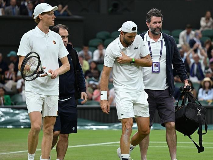 诡异的是,发生这件事没多久,迪米特洛夫便因为胸部受伤退赛,让辛纳在先输两盘,离被淘汰仅有一步之遥的时候意外获得到了胜利。