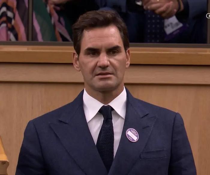 迪米特洛夫受伤后,此前坐在观众席上观赛的瑞士天王费德勒,也从先前的一脸平静变得有些紧张和不安。